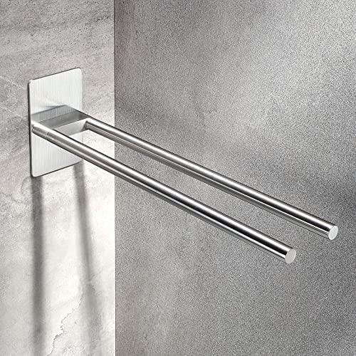 Dvocel Portasciugamani Doppio Senza Foratura Acciaio Inossidabile 304 Porta Asciugamani Autoadesivo 2 Bracci Portasciugamani da Parete per Bagni e Cucine Argento