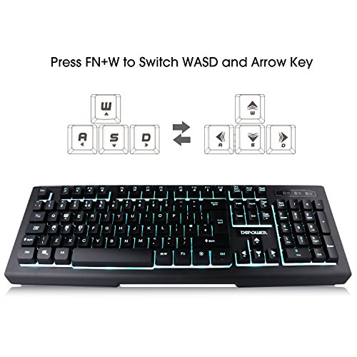 Dvtecheu Tastiera da Gioco, 7 Colori Retroilluminato a LED USB Cablata Computer Keyboard, Nero