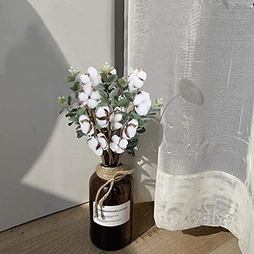 Otterrai 3 bastoncini di fiori secchi di cotone secco naturale, ciascuno con 4 teste di cotone, la lunghezza totale è di circa 46,5 cm, il diametro del cotone è di circa 7,5 cm e ci sono diverse foglie di eucalipto artificiali, fresche e naturali.
