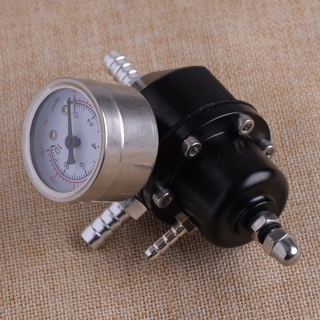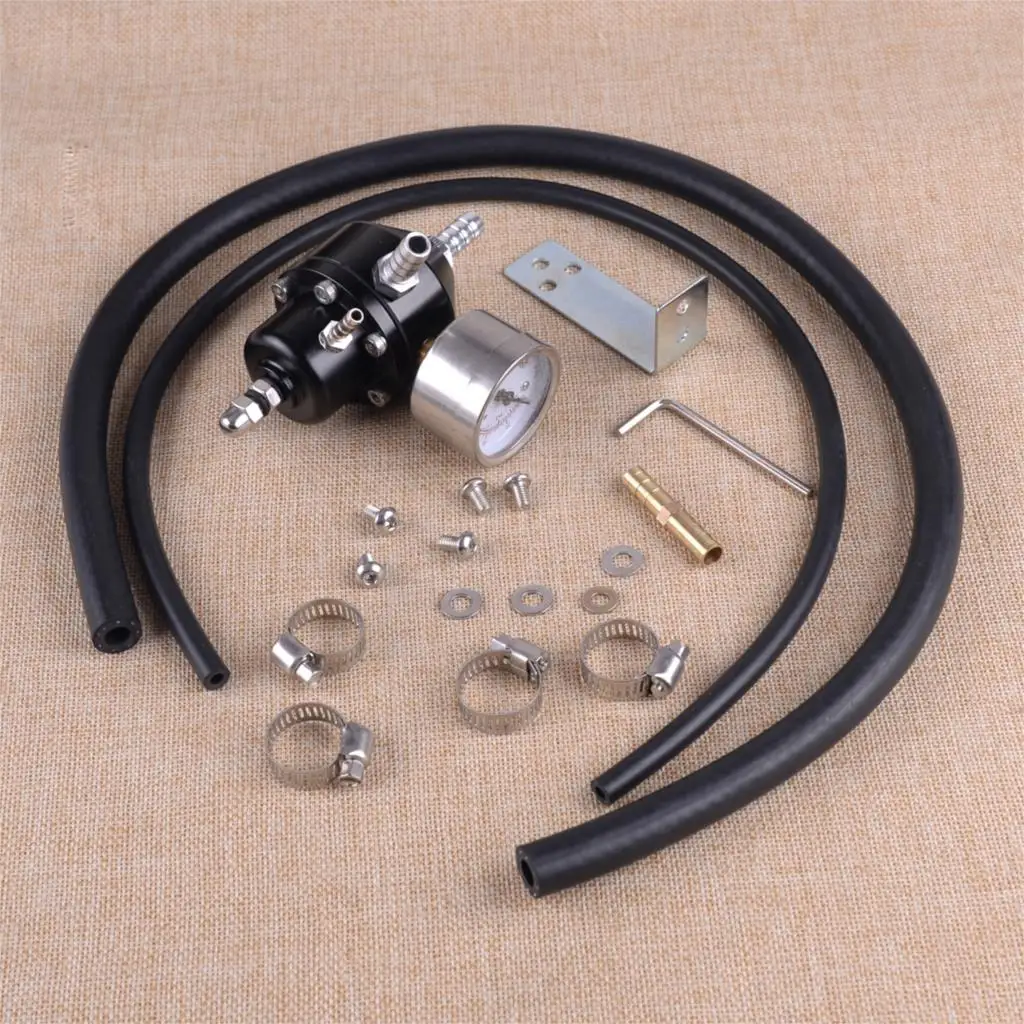 DWCX Black Aluminum Car Adjustable Universal Fuel Pressure Regulator With 0-140 Psi Oil Gauge & Hose Kit