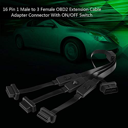Dweekiy Adattatore per Splitter OBD2, 16 Pin 1 Maschio a 3 Femmina Connettore per Cavo prolunga OBD2 con Interruttore ON/off