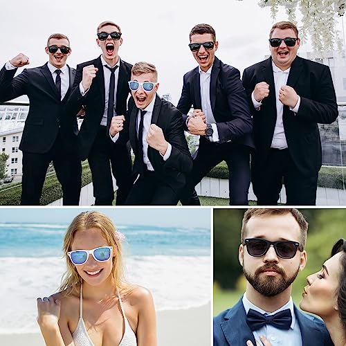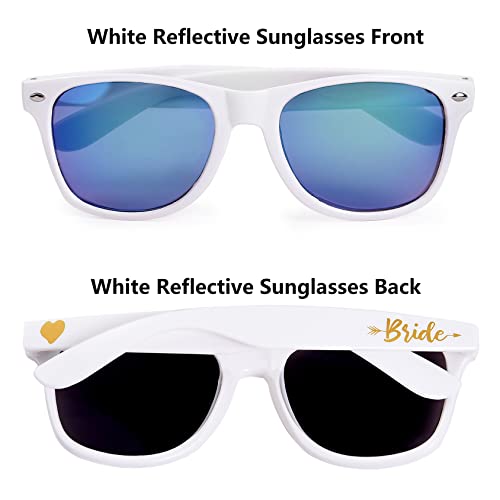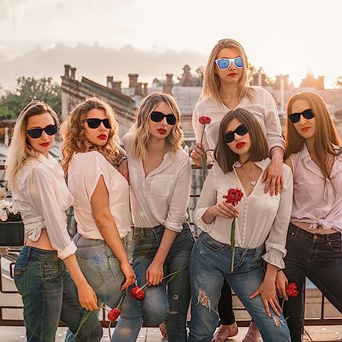 【DESIGN A SPECCHIO】Questo set di occhiali da sole tribù della sposa presenta un elegante design a specchio che aggiunge un tocco scintillante a te e ai tuoi amici. Che sia alla festa di addio al nubilato o per sessioni fotografiche all'aperto, questi damigelle occhiali da sole con specchio valorizzeranno il tuo stile complessivo.