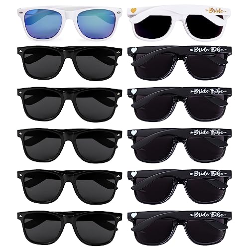 Dwenarry 12 Pack occhiali da sole per addio al nubilato, occhiali da sole nero bride tribe per donne,set di damigelle occhiali da sole forniture per feste