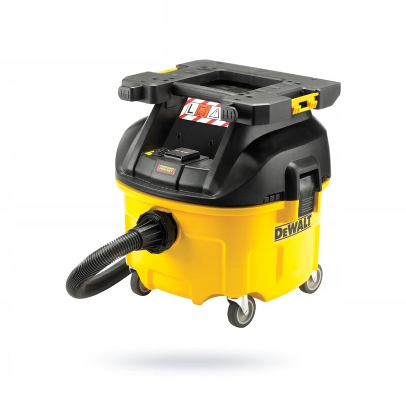 Dewalt DWV901LT-QS Aspiratore solidi/liquidi 1400W Classe L capacità max.30 lt Descrizione Pratico e robusto aspiratore Classe L con filtro autopulente che ne evita l'intasamento, progettato per resistere anche negli ambienti più difficili. Costante flusso di aspirazione anche con polveri di cemento e di legno In dotazione • Aspiratore solidi/liquidi DWV901LT-QS • Tubo flessibile da 2.4 metri x 32mm diametro • Aggancio rapido "Air Lock" 35mm • Sacchetto raccogli-polvere Caratteristiche • Avviamento sincronizzato con l'utensile e spegnimento ritardato di 15 secondi per consentire la completa aspirazione della polvere • Contenitore robusto per resistere negli ambienti più difficili • Presa alimentazione elettroutensile integrata (Max 2200 Watt) dotata di ON/OFF automatico • Sistema TSTAK per aggancio diretto del sistema TSTAK • Costante flusso di aspirazione anche con polveri di cemento e di legno • Innovativo sistema con doppio filtro mantiene un elevato livello di prestazioni in