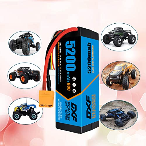 【Hohe Leistung】- Der 4s lipo akku von DXF 14,8v 5200mAh mit einer Entladerate von 60C bietet Ihnen eine sehr hohe Leistung und eine sehr lange Laufzeit für Ihre RC-Autos. Sie sind weit verbreitet für die 1/8 und 1/10 RC-Automodelle.