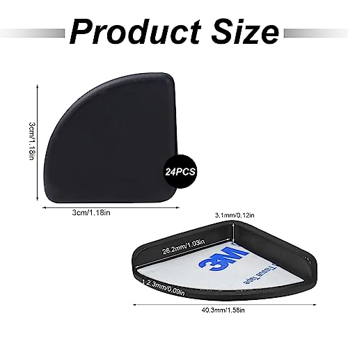 【Specifiche del Prodotto】: 24 x paraspigoli bambini. Dimensioni complessive 3x3x1 cm. A forma di ventaglio. Colore nero. Dimensioni interne: lunghezza 40,3 mm (1,58 in), larghezza 30 mm (1,18 in), spessore laterale e inferiore 2,3 mm (0,09 in).