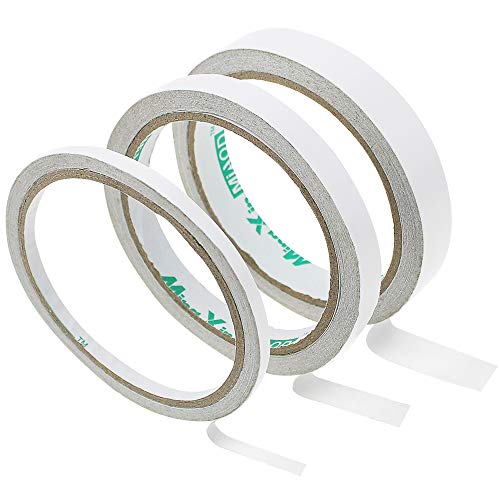 DXLing 3 rotoli di nastro biadesivo in 3 misure nastro biadesivo largo 5 mm/10 mm/15 mm nastro adesivo biadesivo bianco per artigianato lavoro manuale album