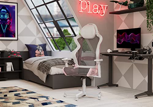 DXRacer (l'originale Air R1S Sedia Gaming, Mesh, Grigio-Rosa-Grigio, Fino a 200 cm