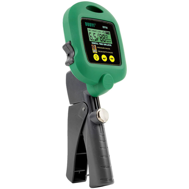 Questo prodotto è uno strumento multifunzionale progettato per la manutenzione e la riparazione di pneumatici per auto, che può gonfiare e sgonfiare pneumatici per auto, rilevare la pressione dei pneumatici e rilevare la profondità del battistrada. Caratteristiche: Utilizzando il display digitale, la lettura delle date è intuitiva, rapida e precisa. Le letture possono essere commutate su diverse unità di lettura in base alle esigenze e alle abitudini di utilizzo. Display LCD con retroilluminazione, nell'ambiente quando la luce è debole può facilmente vedere il valore. Azzeramento e correzione automatici, pronti all'uso quando viene attivato. Righello di profondità del battistrada integrato, comodo per controllare la profondità del battistrada durante la riparazione dei pneumatici. Spegnimento automatico per il risparmio energetico. Specifiche: Colore principale: verde+nero Materiale: ABS Intervallo di test di pressione: 0-1200 kpa (0-12 bar, 0-12,23 kgf/cm2, 0-174,0 psi) Risoluzione