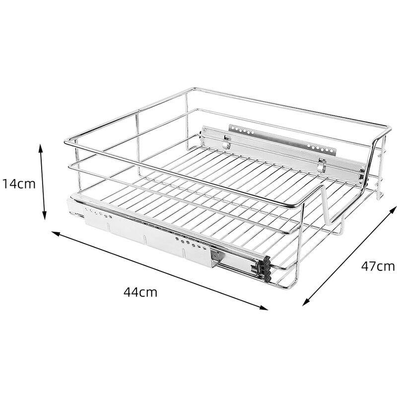 Parametri del prodotto: Dimensioni del pacchetto del prodotto: 50x15x45 cm, Peso lordo: 3.754 kg, Carico massimo: 12 kg, Materiale: rete metallica cromata Dimensioni totali aperte (comprese le guide): 57 x 14 x 44 cm, Dimensioni interne del cesto: ca. 48x42,5x14 cm. Adatto per dimensioni esterne: armadi/mobili/armadio da 60 cm. Benefici: 1. Il cassetto telescopico può essere migliorato 2. Facile da riporre o organizzare gli elettrodomestici, cassetto più chiaro 3. Cursore elastico con estensione completa, facile da montare. Presentazione del prodotto: Questo versatile cassetto estraibile è l'assistente perfetto per l'armadio della cucina, del bagno o della camera da letto;