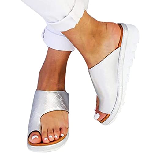 DYHOZZ Sandali per Le Donne Sandali Ortopedici Correttore Alluce Valgo Flop Open Toe Sandali Estivi Casual da Spiaggia Scarpe in Pelle PU con Suola Piatta Sandali