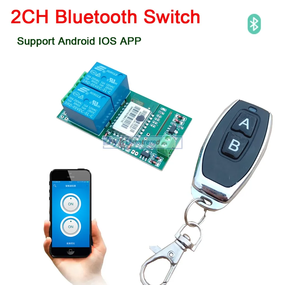 DYKB Bluetooth Switch Smart Relay Switch 2CH control + Remote for phone APP IOS Android Motor drive board garage lock LED LIGHT