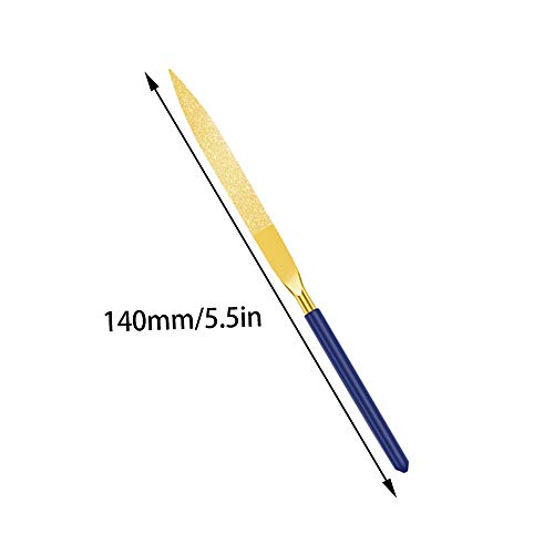 Dylan-EU Set di 10 Lime Diamantate Mini Diamond Files, 140 mm, per Metallo Morbido, Pietra e Plastica, Blu e Oro