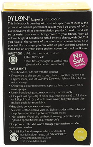 Dylon Tinta per tessuti da usare in lavatrice - giallo girasole 350g incluso sale