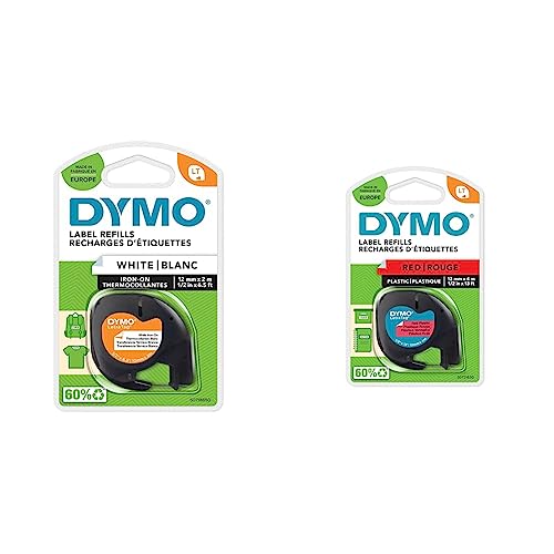 DYMO Letratag Etichette Per Stoffe E Tessuti Stirabile, Rotolo Da 12 Mm X 2 M, Stampa Nera Su Bianco, S0718850 & Letratag Etichette In Plastica, Rotolo Da 12 Mm X 4 M, Stampa Nera Su Rosso, S0721630