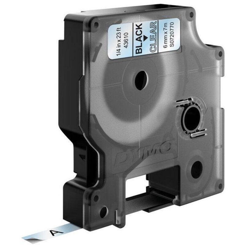DYMO D1 - Standard Etichette - Nero su trasparente - 6mm x 7m. Colore etichetta: Nero trasparente, Materiali: Poliestere, Paese di origine: Belgio. Ampiezza nastro: 6 mm, Lunghezza nastro: 7 m, Tipo di imballo: Scatola