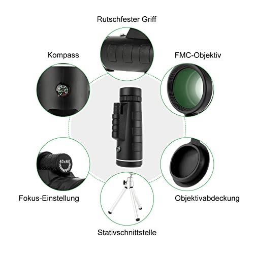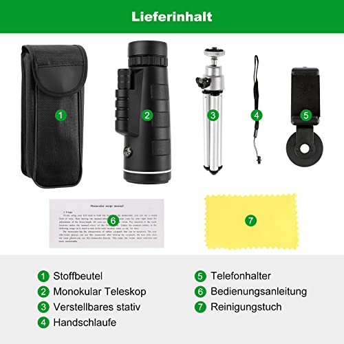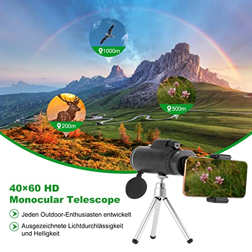 Dyna-Living Monocular HD - Binocolo telescopico 40 x 60 con supporto per cellulare per osservazione degli uccelli, campeggio, escursionismo, visione notturna