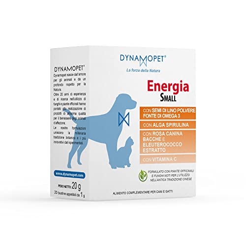 DYNAMOPET | Energia Small - Alimento Complementare per sostenere l'Organismo di Cani e Gatti durante Intenso Lavoro, Confezione 20 Bustine da 1 g - una Bustina ogni 5 kg di Peso dell'Animale