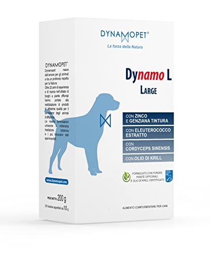 DYNAMOPET | Dynamo L Large - Alimento Complementare per le Difese dell'Organismo di Cani che vivono in Aree Calde e Umide, 20 Bustine da 10 g - una Bustina ogni 40 kg di Peso dell'Animale