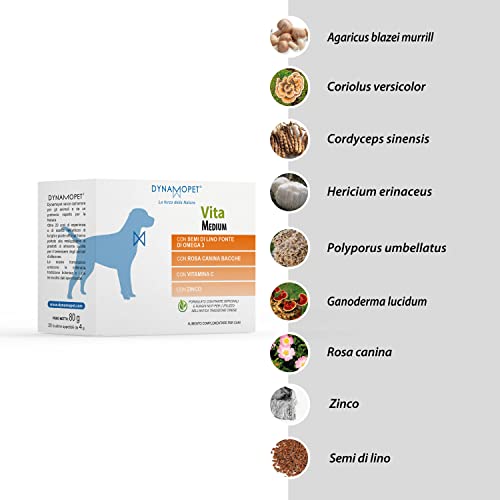 DYNAMOPET | Vita Medium - Alimento Complementare per Mantenere le Difese dell'Organismo del Cane, Confezione 20 Bustine da 4 g - una Bustina ogni 20 kg di Peso dell'Animale