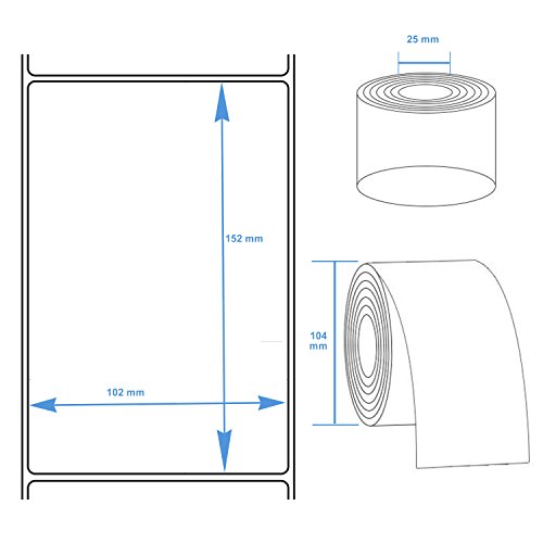 DynaSun 1000 Etichette Termiche Adesive 102x152mm Rotolo per Stampanti Zebra Citizen TSC