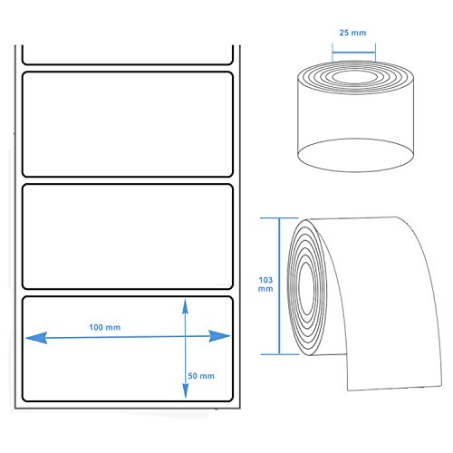 * Dimensioni (L x H): 100 x 50 mm * Anima: 25mm * Perforazione: da etichetta a etichetta