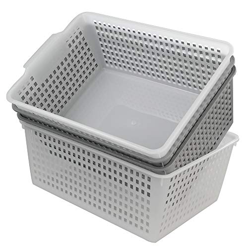Dynko Cesti Plastica Grandi Set Di 4, Trasparenti e Grigi Cesto Rettangolar Cestini Portaoggetti