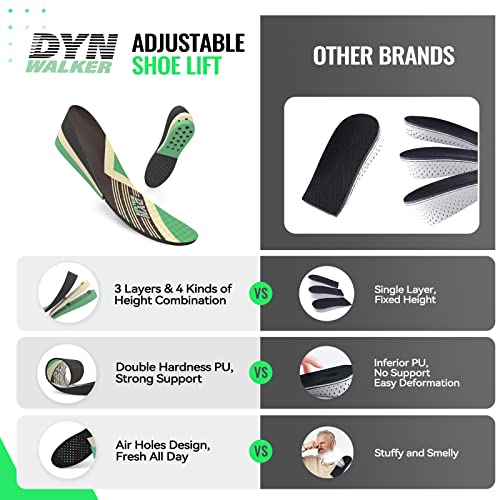 DynWalker Solette Rialzate per Scarpe Mezza Tacco Aumentare 3 Strati Rialzo da 3-7.5 cm Sottopiede Invisibile Uomo Donna Traspiranti Morbido Misura Regolabile L