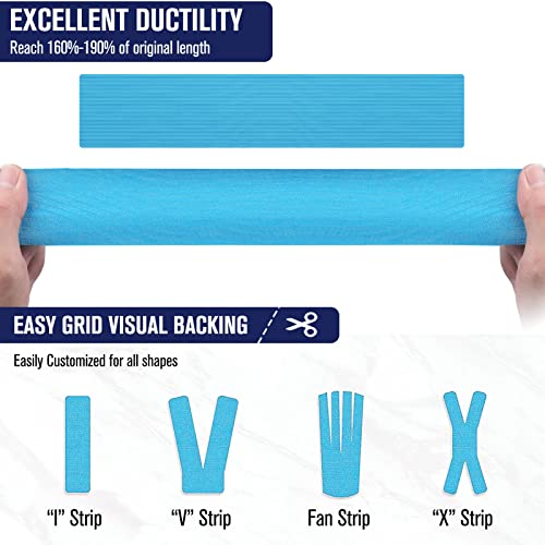 ✅FACILE DA USARE: il nastro kinesiologico non tagliato può essere tagliato in quattro tipi di strisce, come le strisce "I", "Y", "X" e "Fan", e applicato sulla colonna vertebrale, sull'addome, sul collo, sul viso e sulle spalle.Un must per qualsiasi sport, che si tratti di corsa, escursionismo, arrampicata o trekking.