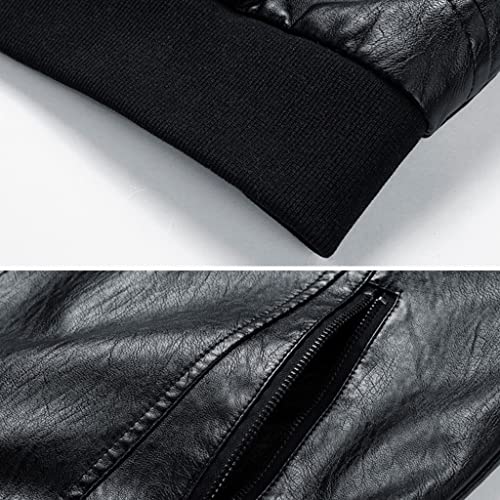 Dzwyc Stand Collar Slim Giacche maschili Bomber Giacche da uomo Inverno Giacca in pelle Biker Moto Zipper Zipper Manica lunga Cappotto a maniche lunghe (Color: Black, Dimensione: 6)