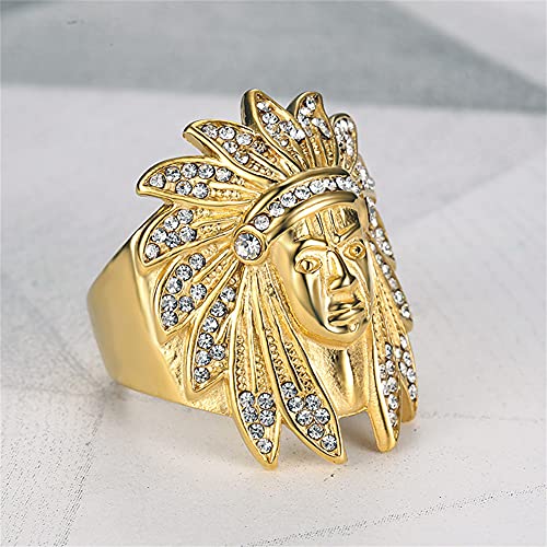 DZXCB Anelli Capo Indiano, Strass Placcati in Oro in Acciaio Inossidabile Accessori Vintage per Gioielli Nativi Americani 7-13,13