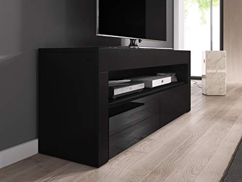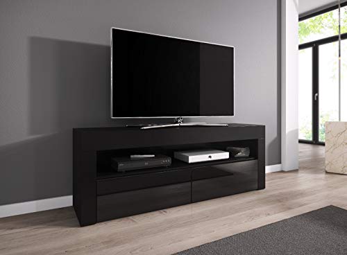 E-Com Mobile TV TV Entertainment Lowboard Luna 140 cm, Corpo Nero Opaco/Frontale Nero Lucido