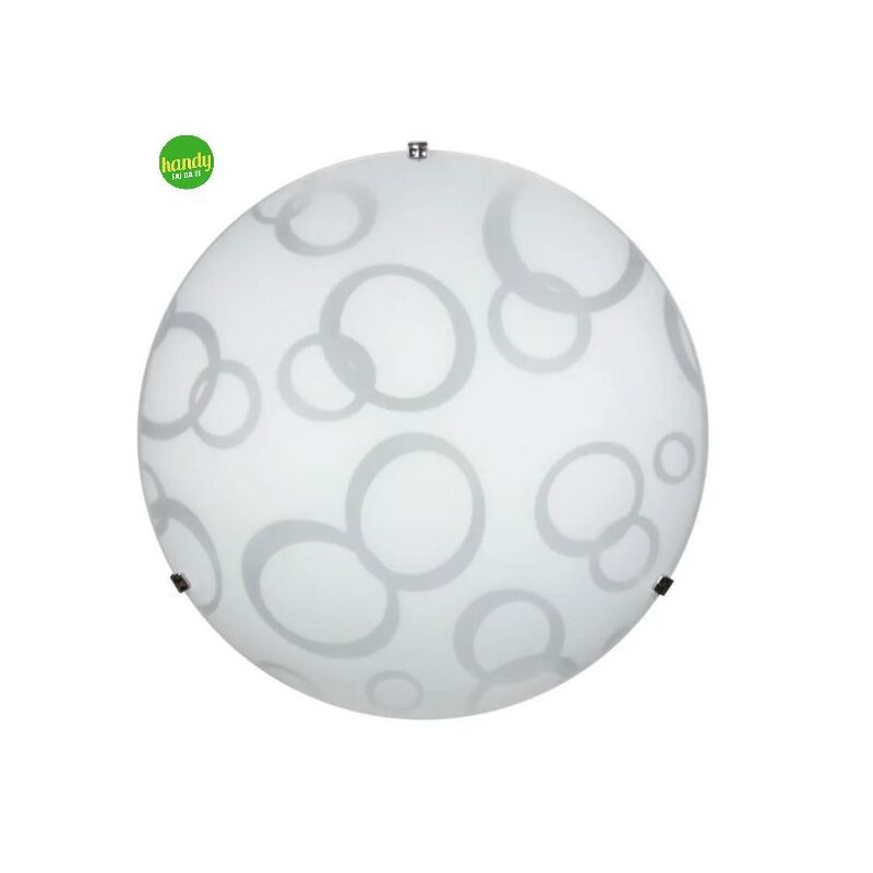 Dalla linea dedicata all'illuminazione da interno a marchio E - ENERGY, l'applique DARIA in vetro dalla classica forma a lunetta, è caratterizzata da un decoro a linee bianche, rispecchiando i canoni dello stile contemporaneo dando un tocco di colore all'ambiente circostante grazie all'alternanza di vetro trasparente a linee bianche, la sua classica dimensione è perfettaper essere installata in corridoi e disimpegni, i ganci cromati enfatizzano i toni moderni e luminosi della plafoniera. Grazie alla presenza di unattacco standard E27, sarà possibile inserirvi lampadine a bassissimo consumo energetico a LED abbinando così efficienza luminosa ad una resa di illuminazione sempre adeguata allo spazio dove viene installata.