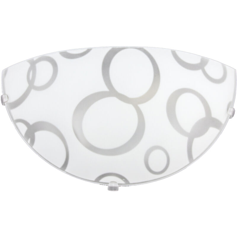La lampada per interni Betta. dallo stile moderno è idonea per l'installazione a parete che a soffitto. Compatibile con lampade a LED. Supporta 1 Lampadina tipo E27 max 57 watt. Linea BETTA Applique con ganci di plastica trasparente Decorazioane: cerchi Applicazione a soffitto o parete Portalampada E27 Wattaggio max: 57 W 1 Lampadina (Non inclusa) Compatibile con lampade a LED Materiale: Vetro e Metallo Dimensioni: 30 x 15 x 10 cm