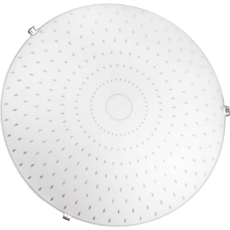 Lampada Dorian per interni dallo stile moderno idonea per l'installazione a parete o soffitto. Compatibile con lampade a LED. supporta 1 Lampadina tipo E27 max 57 watt. Linea DORIAN Plafoniera con ganci di plastica cromati Effetto sabbiato Applicazione a soffitto o parete Portalampada E27 Wattaggio max: 57 W 1 Lampadina (Non inclusa) Compatibile con lampade a LED Materiale: Vetro e Metallo Dimensioni: 30 x 10 cm
