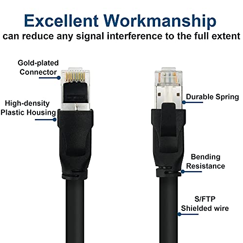 [Compatibilità universale] Cavi Ethernet Cat 8 Compatibile con le versioni precedenti di CAT 7, CAT 6E / 6, CAT 5E. Compatibile con tutti i dispositivi che utilizzano la rete RJ45. Puoi usarli per tutte le applicazioni di rete ad alte prestazioni: server di dati cloud, pannelli di connessione, apparecchiature domestiche e per ufficio di Smaret, ad esempio Amazon Alexa, Google Home, Apple Siri