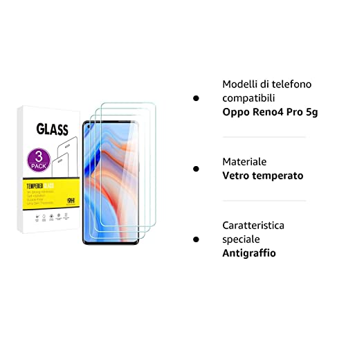 E-Hamii [3 Pezzi Vetro Temperato Infrangibile 9H Compatibile con OPPO Reno4 Pro 5G,[Cristallo HD Chiaro] Pellicola Salvaschermo da 0,33 mm per OPPO Reno4 Pro 5G