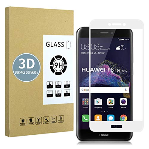 E-Hamii Screen Protector Compatibile con Huawei P8 Lite 2017[Bianco],[Alta Definizione][Anti Graffio],Vetro Temperato 3D,[Sensitive Response][Installazione Senza Bolle]