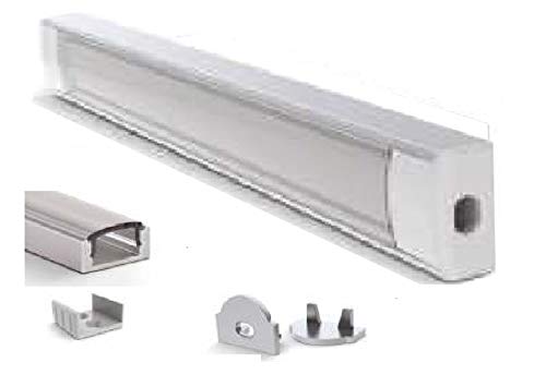 E-led Profilo alluminio per LED 17X7X2000mm con tappi graffette e copertura in policarbonato satinata