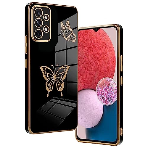 Design Galvanico Glitterato -- per Samsung Galaxy A13 4G cover silicone, che utilizza la tecnologia galvanica, cover posteriore con motivo farfalle, un bellissimo bordo placcato in oro circonda con grazia i bordi del paraurti e i bordi della fotocamera, custodie per cellulari Samsung Galaxy A13 4G che brillano alla luce o alla luce del sole, aspetto nobile e bello. Rendere il vostro telefono un eye-catcher.