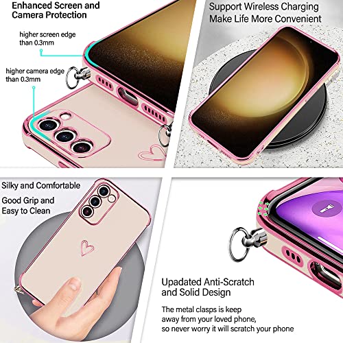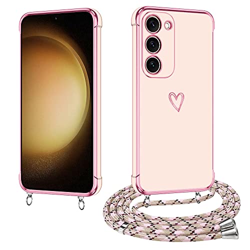 E-Lush Cover per Samsung S23 Plus con Cordino, Ultra Sottile Cuore Amore Elettrolitico Cover per Samsung Galaxy S23 Plus, Morbido TPU Silicone Custodia con Regolabile Collana Antiurto Case, Oro Rosa