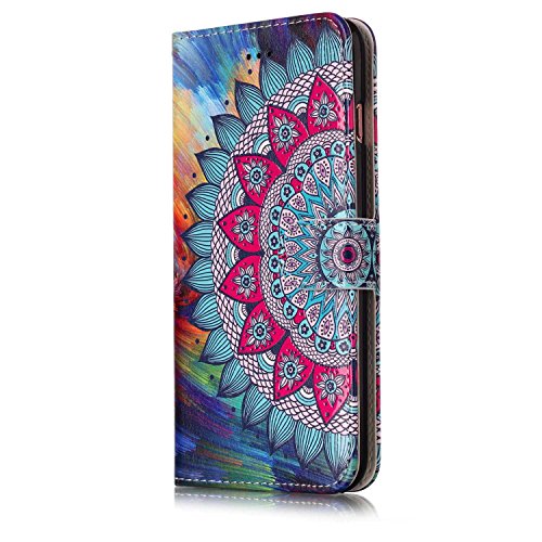 E-Mandala Custodia Cover Apple iPhone 5 5S SE Pelle a Libro Flip Case Portafoglio Modello Disegni Silicone Antiurto Morbido Bumper - Mandala