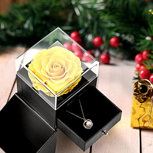 E-MANIS La Bella e la Bestia Rose Confezione Regalo di Gioielli in Rosa Conservati a Mano,Fiore Mai Appassito,Regali per Donne San Valentino,Festa della Mamma,Natale Rosa Eterna (Giallo)