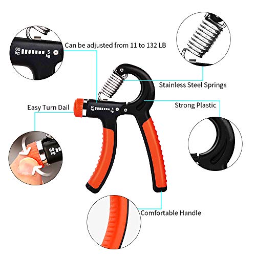 E-More Hand Grip Strengthener Resistenza Regolabile 5 - 60 Kilogram Mano Dito Polso avambraccio Forza Trainer Ginnico per Adolescenti, Donne, Uomini, Anziani (2 Pezzi)