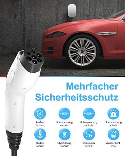 Sicuro e affidabile dal Car Charger Type 2:Certificato internazionale e dotato di una scatola di controllo con protezione IP65. Questo è progettato per la massima resistenza e durata ed è adatto a diverse condizioni meteorologiche (-22 °F ~ 122 °F). La stazione di ricarica dispone di meccanismi di protezione contro sovracorrente, sovratensione, sottotensione, flash, cortocircuito, errore di collegamento, spegnimento di emergenza, diodo mancante, guasto a terra e sovratemperatura
