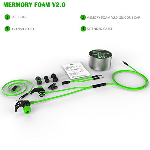 E-Sport Auricolari Cuffie stereo con microfono, auricolari HIFI da 3,5 mm con auricolari per cavo di prolunga e adattatore per PC, laptop e telefoni cellulari. (Verde)