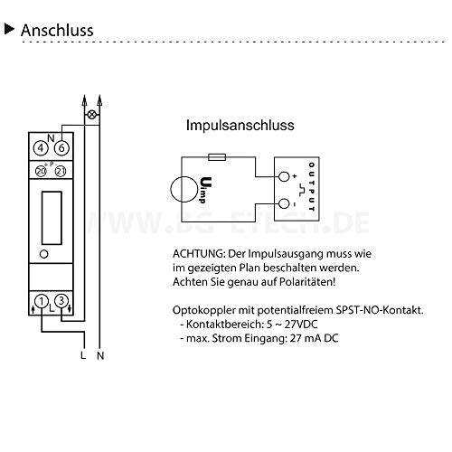 B+G E-Tech DRS155D - Contatore per corrente alternata, digitale, LCD, 5(50)A per barra DIN con interfaccia S0 1000 imp./kWh