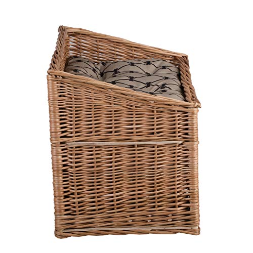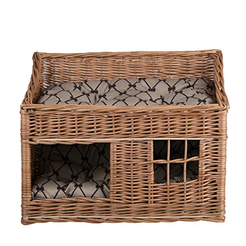 E-wicker24 Cuccia Rettangolare per Gatti in Colore Naturale, Cestino per Gatti in Vimini, Cestino per Il Gatto con Due Piani, Gatti con Cuscino e Finestra