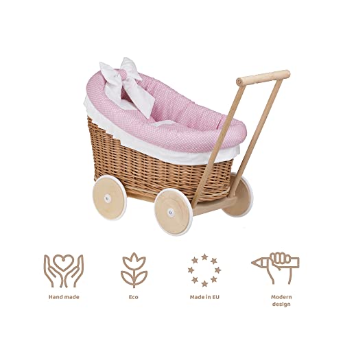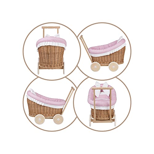 E-wicker24 - Lettino per Bambole in Vimini, Giocattolo in salice, Carrozzina in vimini