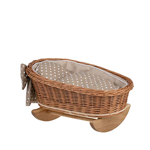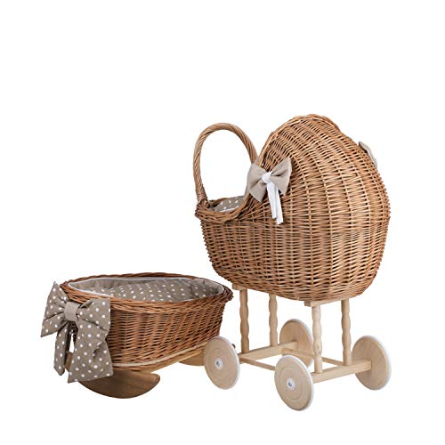 E-wicker24 Passeggino per bambole e culla in vimini con biancheria da letto